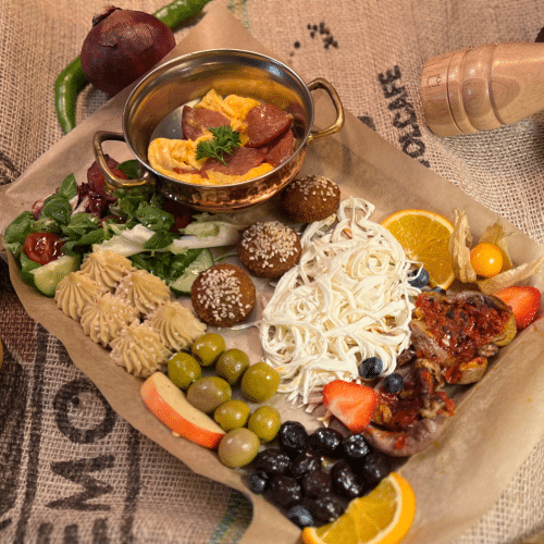 mit einer Ofenkartoffel, Frischkäse, Hummus und Guacamole